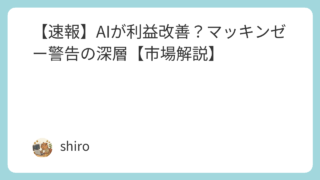 仮想通貨 【速報】AIが利益改善?マッキンゼー警告の深層【市場解説】 マッキンゼー・チャイナ会長がAIの企業利益への影響に警鐘を鳴らしました。AI投資ブームの裏側にある現実と、個人投資家が今考えるべき戦略を深掘りします。 2026.02.14 仮想通貨