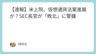 仮想通貨 【速報】米上院、仮想通貨法案進展か?SEC長官が「敗北」に警鐘 米国で仮想通貨規制法案の動きが活発化。上院民主党議員が前向きな姿勢を見せる一方、SEC長官は「敗北」の危険性を指摘。その背景と日本市場への影響を解説します。 2026.02.16 仮想通貨