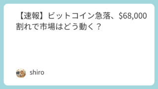 仮想通貨 【速報】ビットコイン急落、$68,000割れで市場はどう動く? ビットコインが元記事によると、$68,000を割り込み、市場全体が下落基調に。この動きの背景と、今後の日本市場への影響、注目すべきセクターを深掘りします。 2026.02.17 仮想通貨