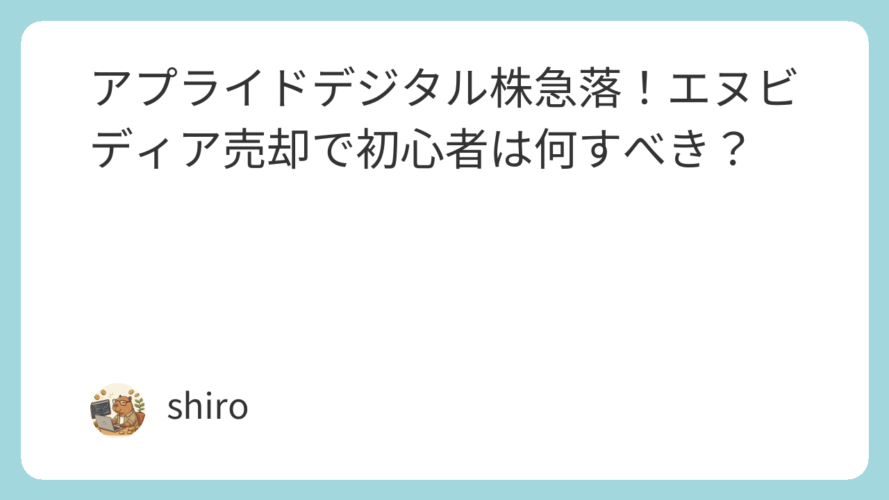 アプライド・デジタル株急落で不安なあなたへ。エヌビディア売却は終わりか?