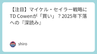 仮想通貨 【注目】マイケル・セイラー戦略にTD Cowenが「買い」?2025年下落への『深読み』 なぜ今、このニュースに注目すべきなのか?ビットコイン市場は、その魅力的なボラティリティと将来性から、常に投資家の注目を集めています。特に、ビットコインを大量保有するマイクロストラテジーのマイケル・セイラー氏の動向は、市場のセンチメントに大き... 2026.01.30 仮想通貨資産運用