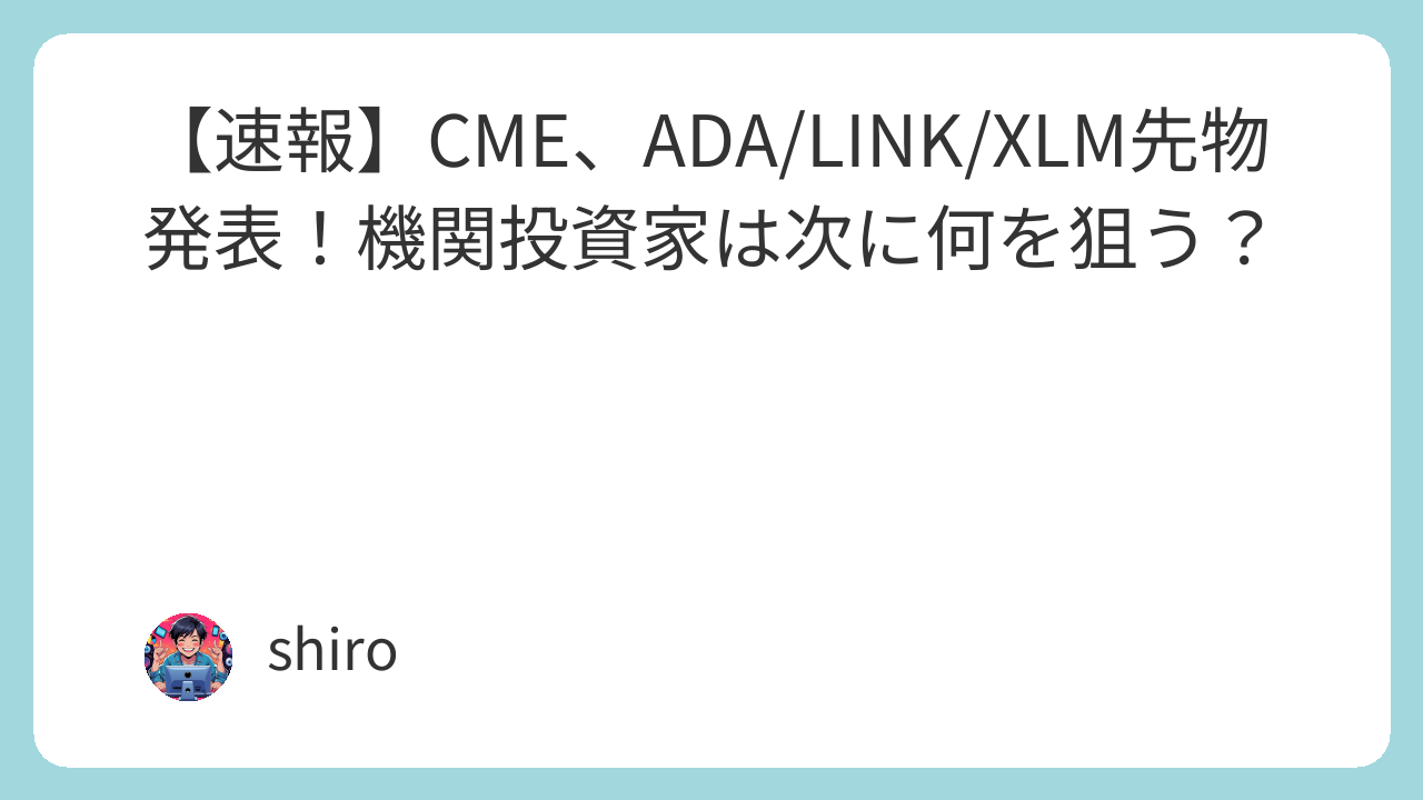 【速報】CME、ADA/LINK/XLM先物発表!機関投資家は次に何を狙う?