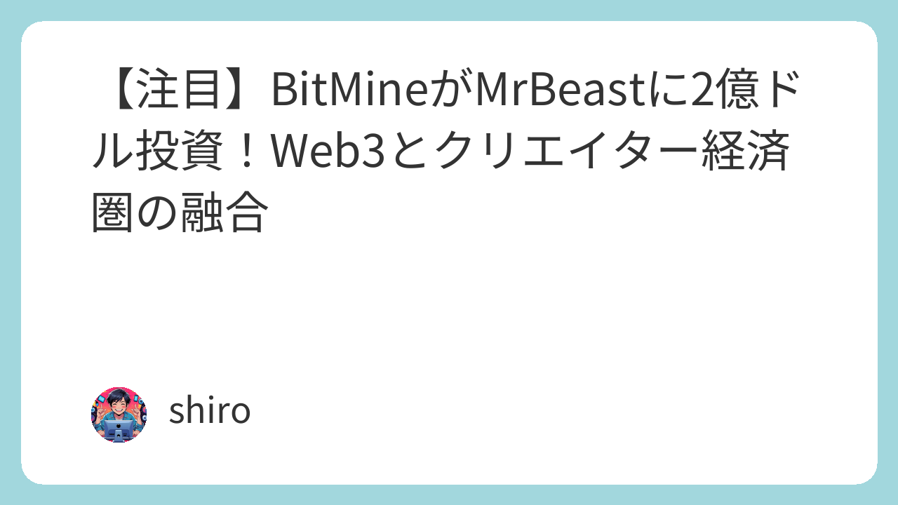【注目】BitMineがMrBeastに2億ドル投資!Web3とクリエイター経済圏の融合