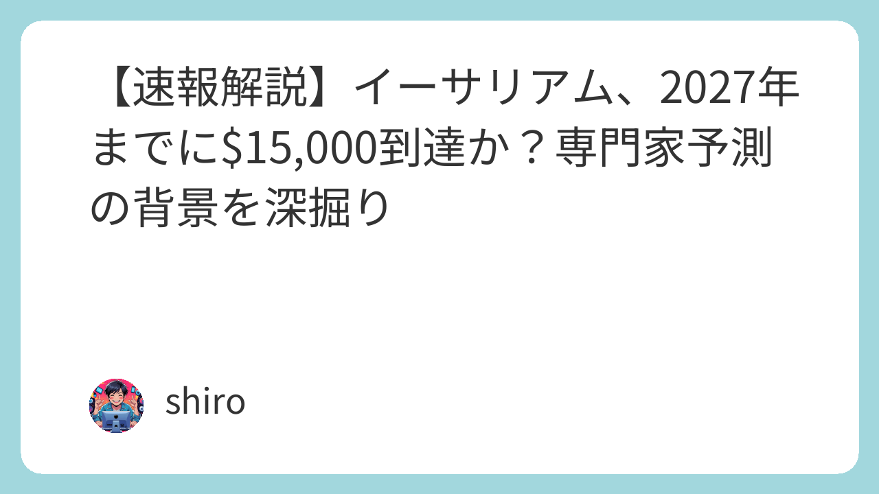 【速報解説】イーサリアム、2027年までに$15,000到達か?専門家予測の背景を深掘り