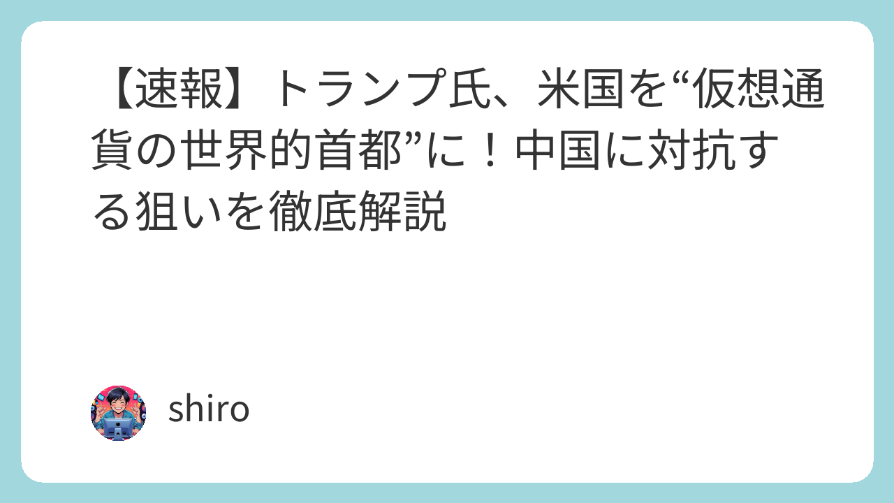 【速報】トランプ氏、米国を“仮想通貨の世界的首都”に!中国に対抗する狙いを徹底解説