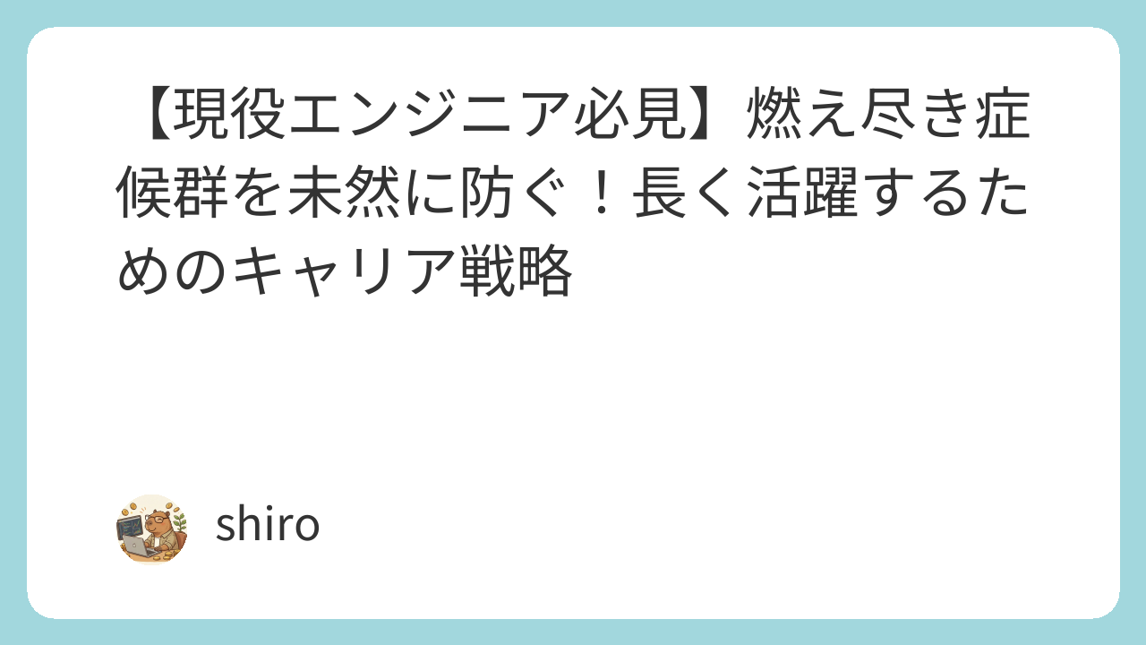「このままで本当にいいのかな」「もっと自分に合った働き方があるはず」と漠然とした不安を抱えながらも、具体的な行動に移せていない方もいるかもしれません。今回の記事では、エンジニアが陥りやすい「燃え尽き症候群(バーンアウト)」を防ぎ、充実したキャリアを長く続けるための働き方と、次の一歩を踏み出すためのヒントをお伝えします。