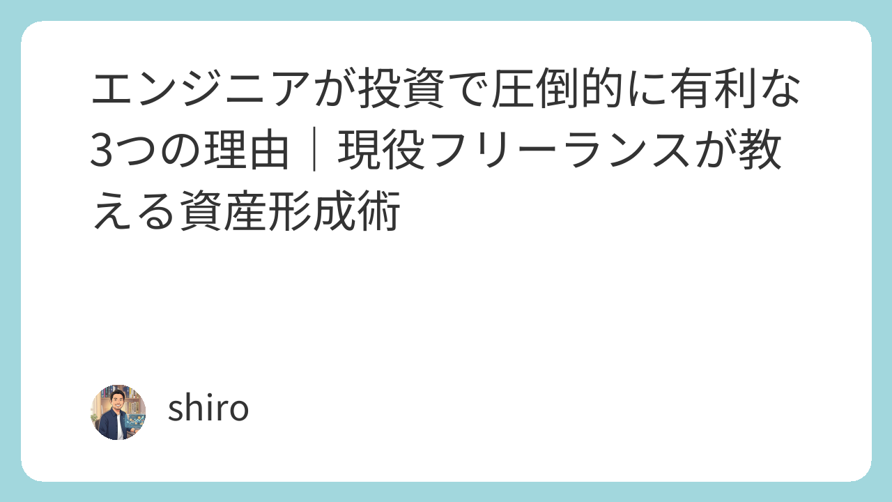 都内でフリーランスとして働きながら、私は毎月20万円をNISAなどの積立に回しています。特別なことをしているわけではありません。エンジニアが日常的に使っている考え方や技術を、そのまま投資の場に持ち込んでいるだけです。なぜ私たちの仕事が投資に直結するのか、その実感を整理しました。