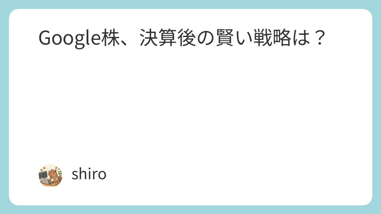 アルファベット(Google)の最新決算ニュースを見て、「今、買うべきか?それとも売るべきか?」と悩んでいませんか?