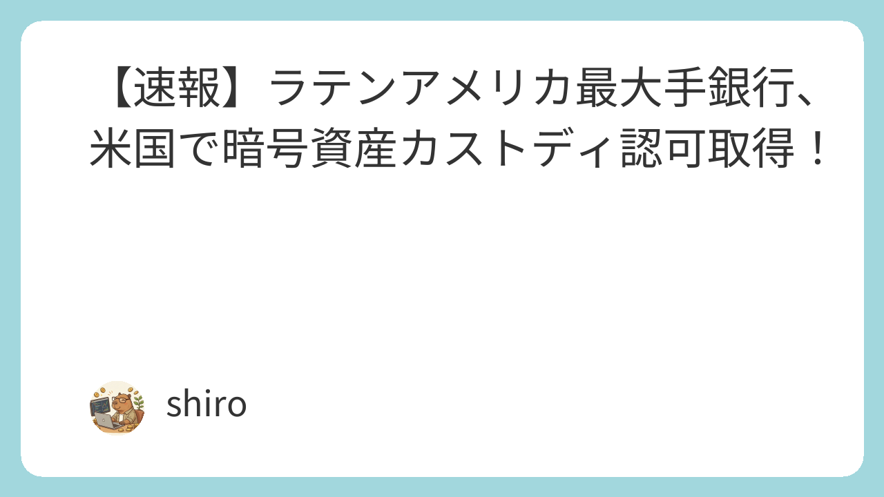 - ラテンアメリカ最大のデジタル銀行が、元記事のタイトルが示唆するように、米国で暗号資産のカストディ(保管)サービス提供に必要な認可を獲得しました。