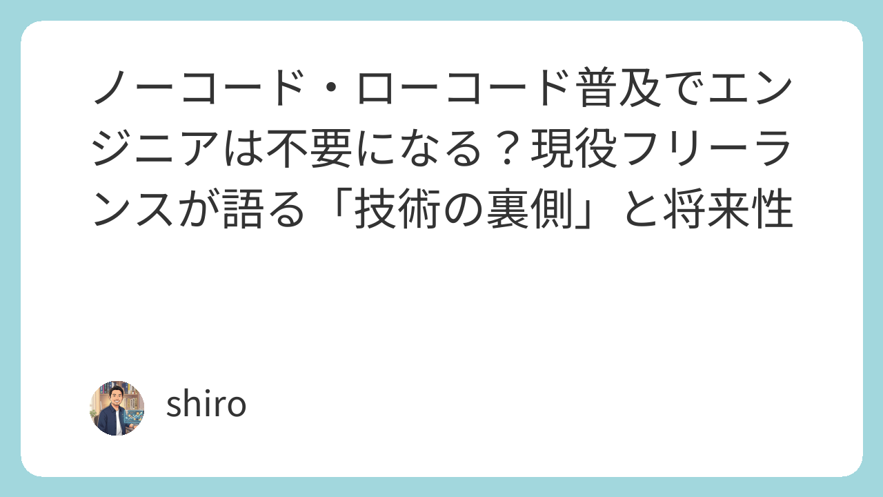 ノーコードは敵ではなく、面倒な単純作業を肩代わりしてくれるパートナーだ。浮いた時間で、より複雑なアーキテクチャの設計や、市場価値の高い難解なプロジェクトに挑んでいけばいい。今の環境に少しでも違和感があるなら、まずはエージェントを通じて自分の現在地を確認してみるのも手だ。