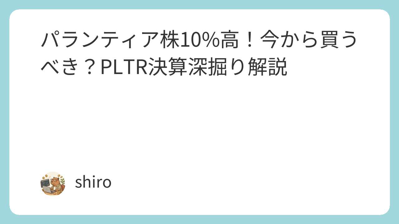 引用元: パランティア、決算受け時間外で10%高=米国株個別(株探ニュース)