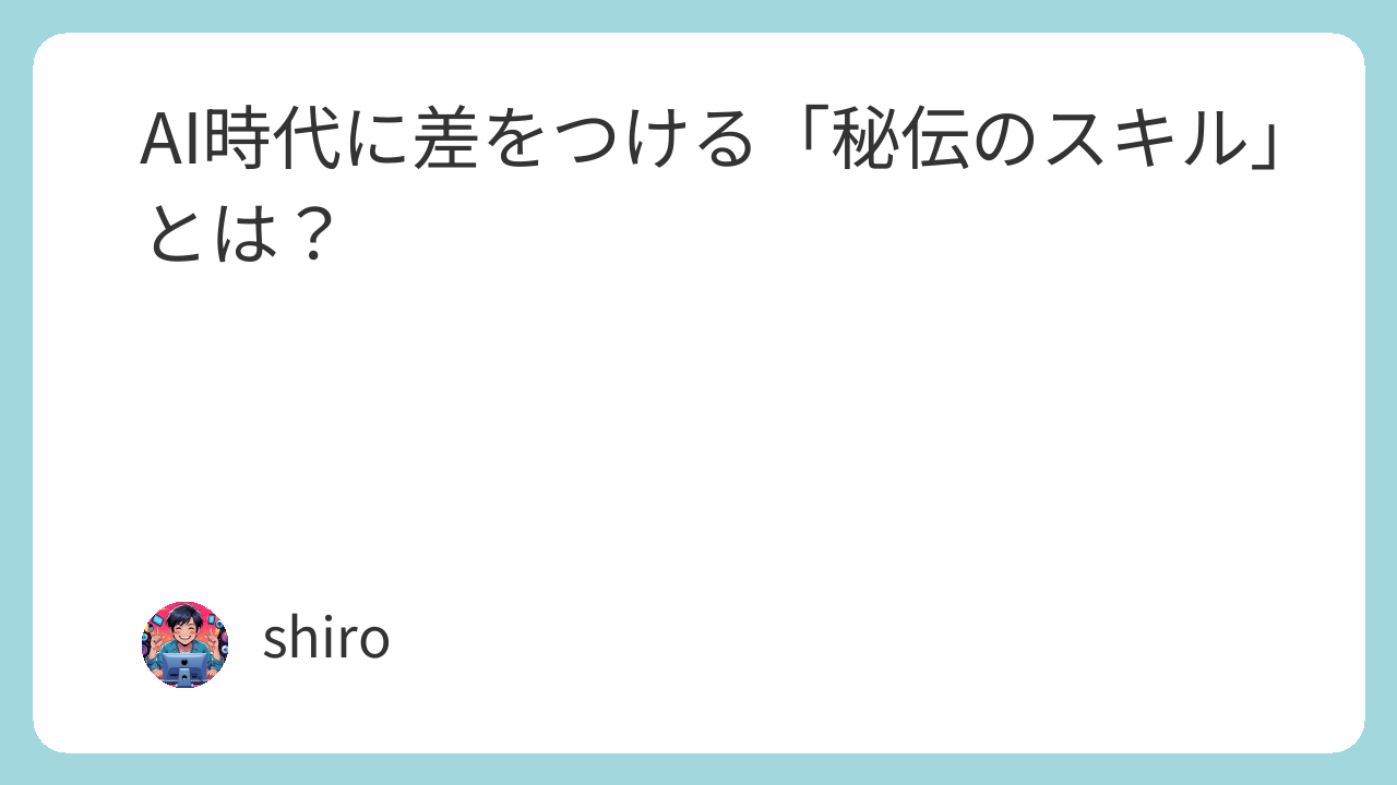 もし、AIがどんなに優れたコードやアイデアを生成できても、それを本当に役立つ形で「引き出す」スキルが、これからの開発者の命運を分けるとしたらどうでしょう?