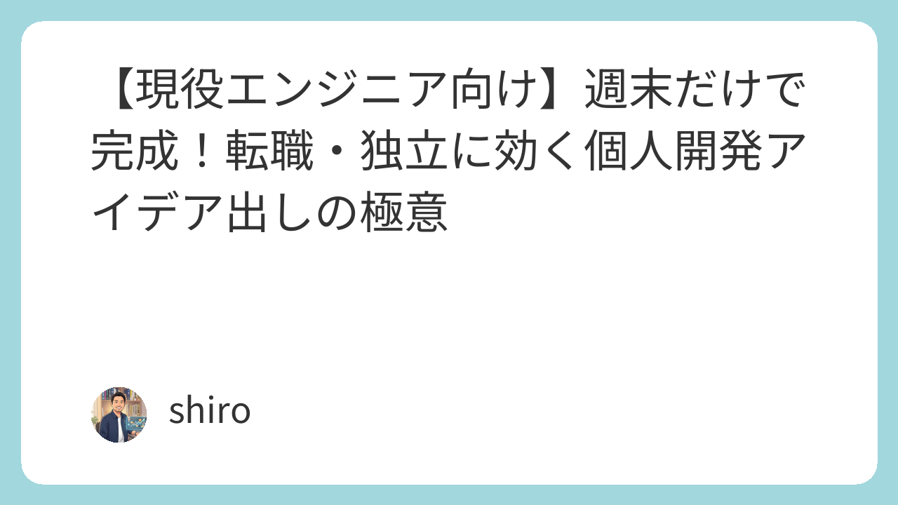 今の仕事に漠然とした不安を抱えつつも、転職や独立に踏み出せない。そんな20〜30代のエンジニアにとって、最大の武器になるのが「個人開発」です。